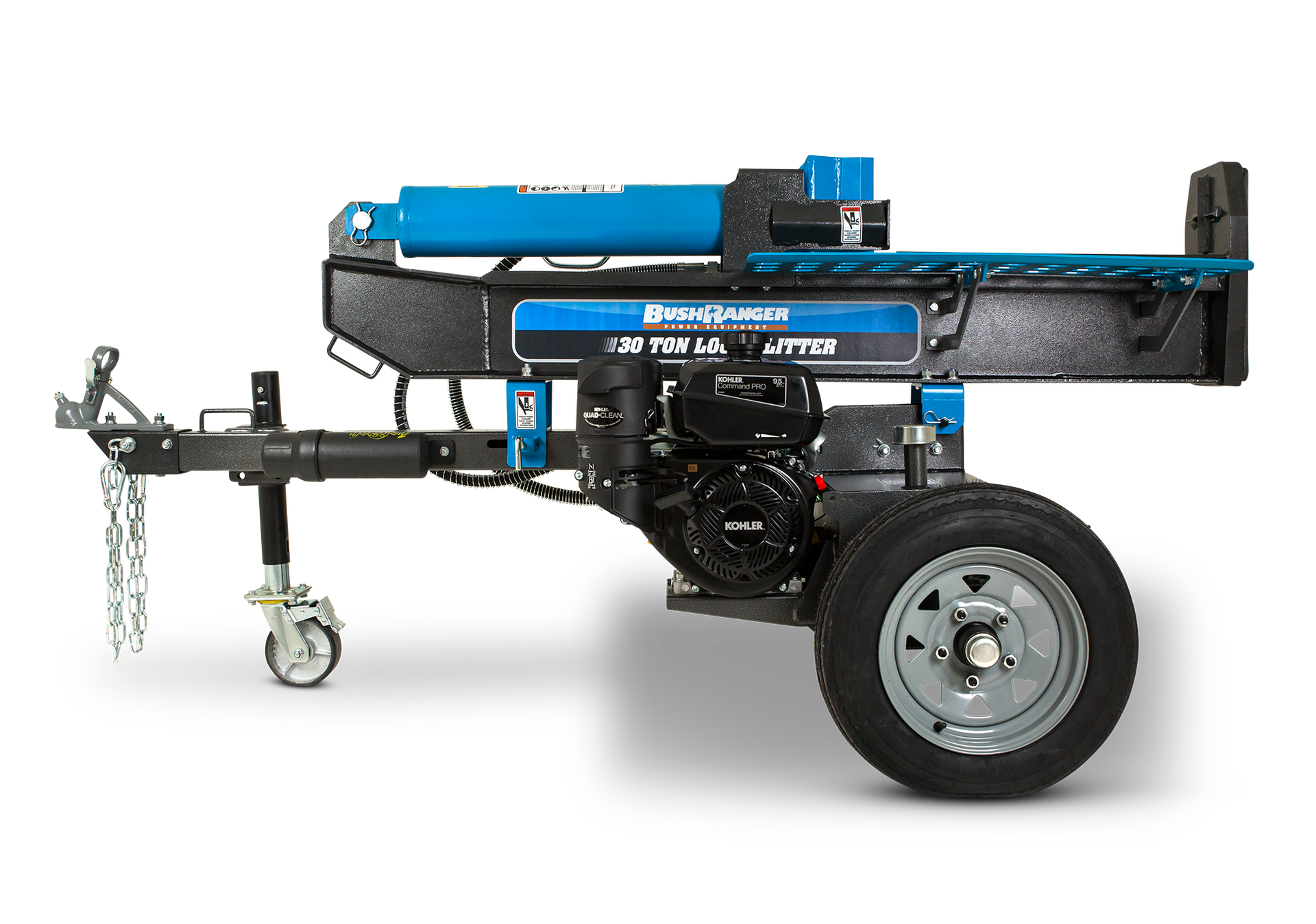 The Bushranger 30-Ton log splitter provides quality and power at an affordable price. Fitted with a KOHLER Command PRO CH395 engine, a manually activated auto return valve with an 12.9 second cycle time and quality features throughout this log splitter will provide many years of reliable service.